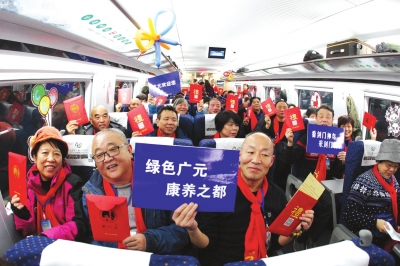 在D4251次列车上,有两节车厢的150多名西安游客组团到广元旅游,率先抢到了包括广元旅游护照、广元旅游代金券等在内的“旅游红包”。在广元期间,他们将游览广元的千佛崖、皇泽寺、昭化古城、剑门关等景区,旅程结束后从剑门关站乘高铁返回西安。